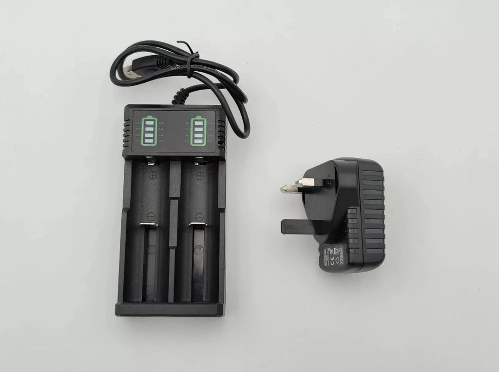 2 x 26650 3.7V Li-Ion Rechargeable Batteries+2 Ports Battery Charger Button Top
