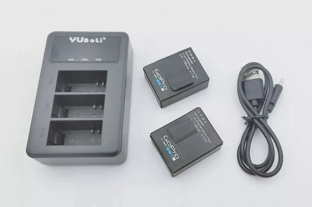 🔋 2x Genuine GoPro Hero 3+/Hero 3 Battery + 3-hole charger (OEM)
