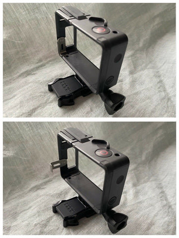 The Frame is the smallest, lightest way to mount your GoPro, and enables ultra compact, low-profile mounting. The open design delivers optimal audio capture during low-speed activities, plus access to the camera's microSD, Micro HDMI and USB ports for easy data offload, live-feed video and charging. An extendable support arm allows you to conveniently attach an LCD Touch BacPac or Battery BacPac (sold separately), and holds the BacPac securely in place while shooting.1 The integrated latch makes removing your GoPro from The Frame quick and easy. Compatible with HERO4, HERO3+ and HERO3.